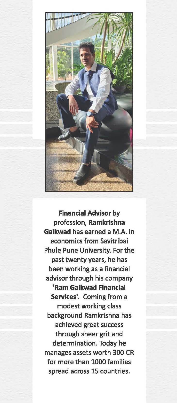 Born into poverty to working class parents, life was hard for young Ramkrishna Gaikwad. Bur Ram was always a dreamer. He believed in the power of hard work and talent to transform one’s life. Against all odds he pursued his education becoming first graduate in his family and then went on to complete his MA in economics. Always yearning for a better life, he worked hard, giving his all to various sales and marketing jobs to finally entering the field of mutual funds.