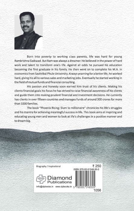 The book “Phoenix Rising: Slum to millionaire” chronicles his life’s struggles and his mantra for achieving meaningful success in life. This book aims at inspiring and educating young men and women to look at life’s challenges in a positive manner and to dream big.